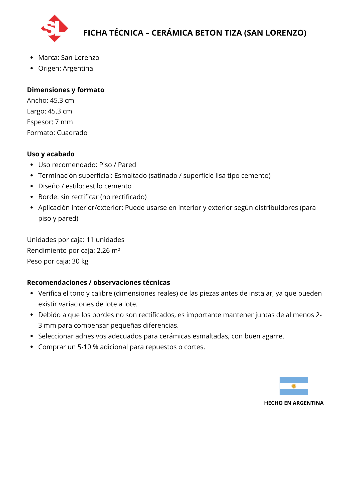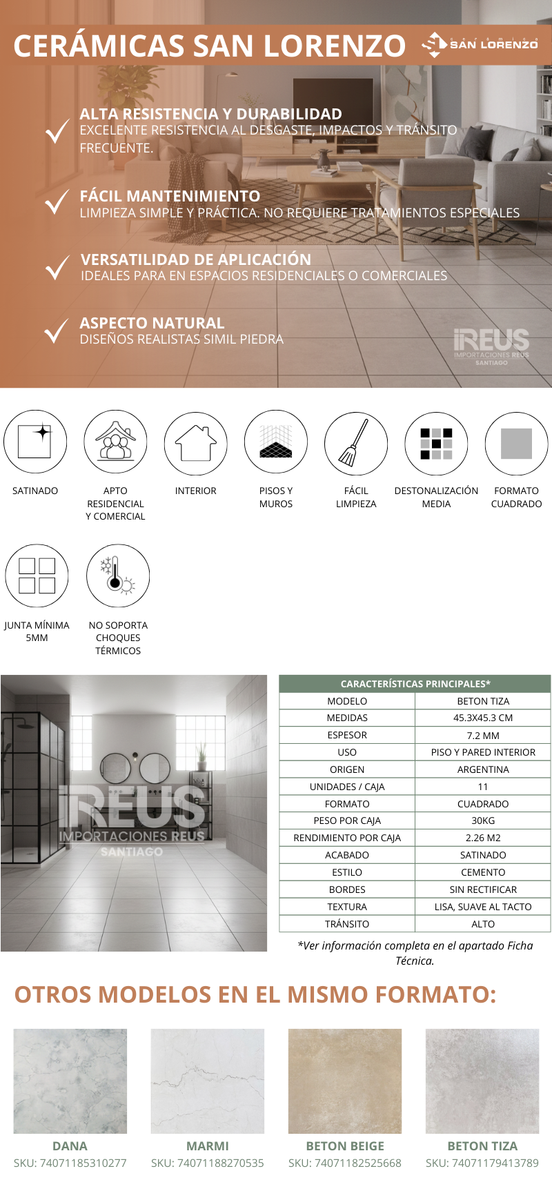 Cerámica 45.3x45.3cm $5.490xm² - Beton Tiza Stock por sucursal Stock por sucursal $ 12.407 cantidad Agregar al carro Encargar Imágenes referenciales: los colores pueden variar según la configuración de cada pantalla.