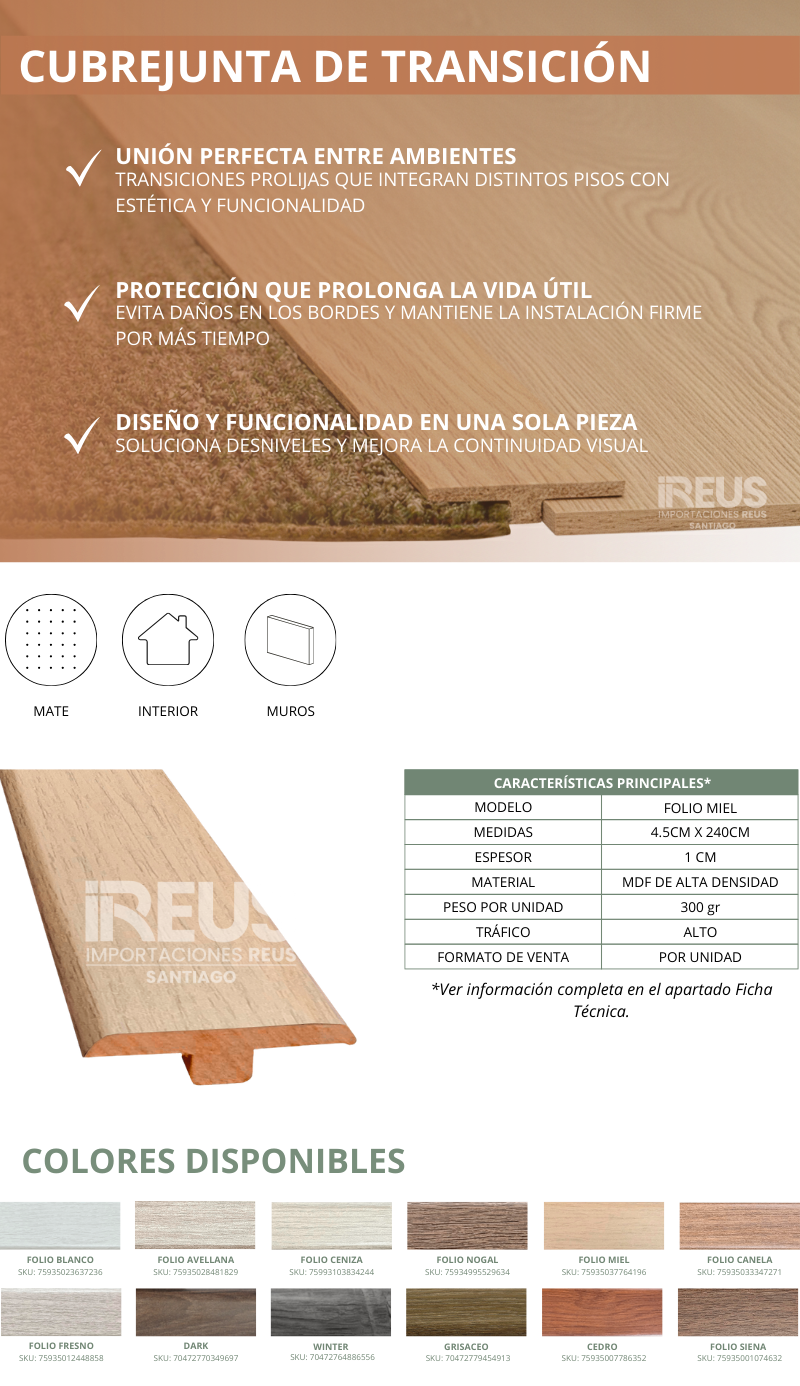 Cubrejunta de Transición 9X45X2400mm - FOLIO MIEL