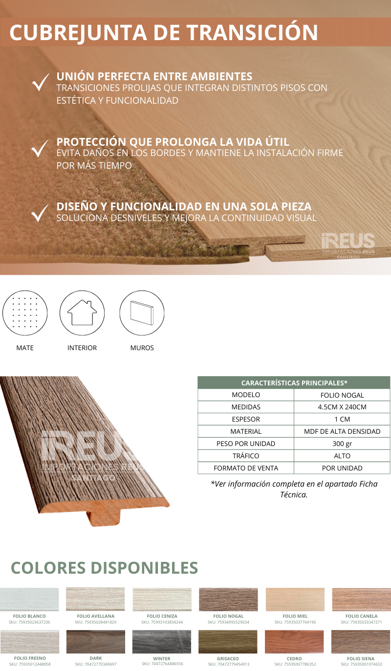 Cubrejunta de Transición 9X45X2400mm - FOLIO NOGAL