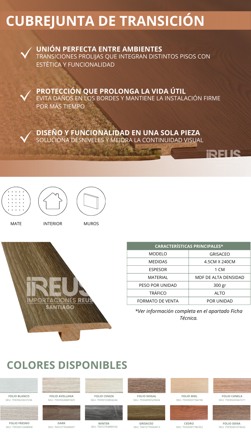 Cubrejunta de Transición - GRISACEO Stock por sucursal Stock por sucursal $ 7.490 cantidad Agregar al carro Encargar Imágenes referenciales: los colores pueden variar según la configuración de cada pantalla.