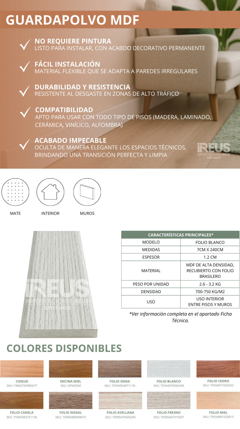 GUARDAPOLVO 12X70X2400mm - FOLIO BLANCO