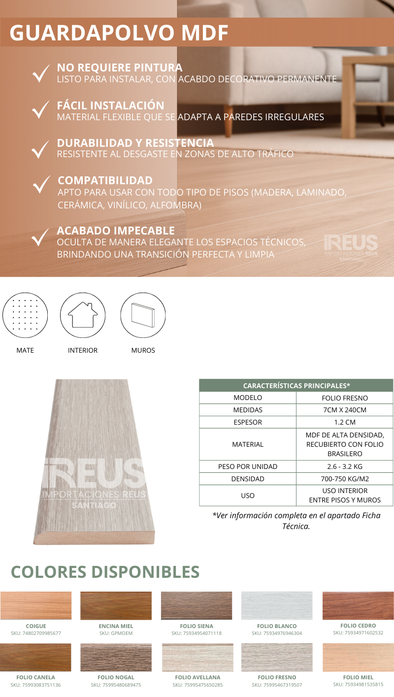 GUARDAPOLVO - 12X70X2400mm - FOLIO FRESNO