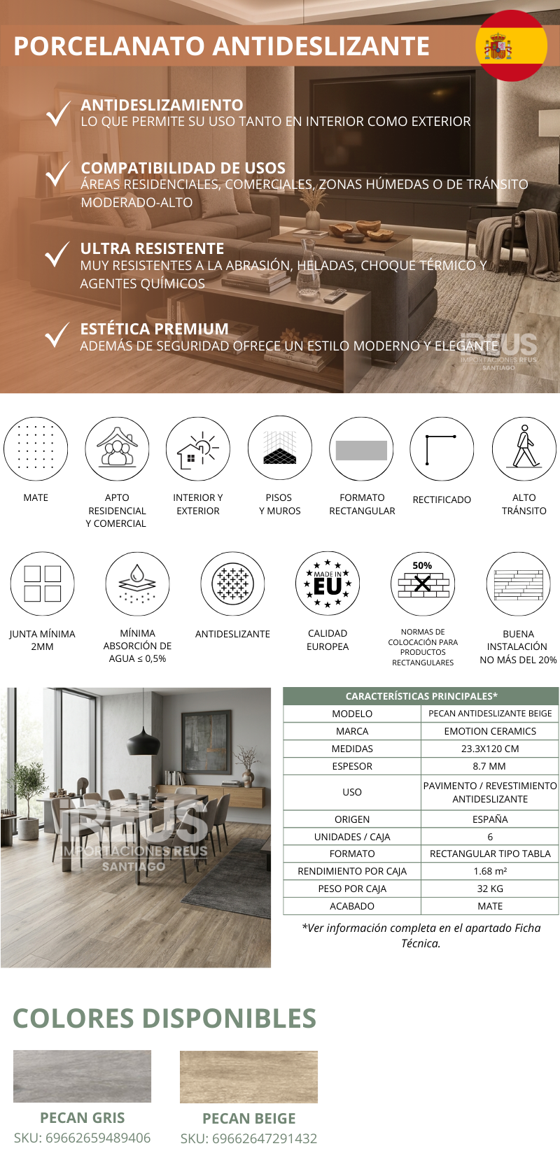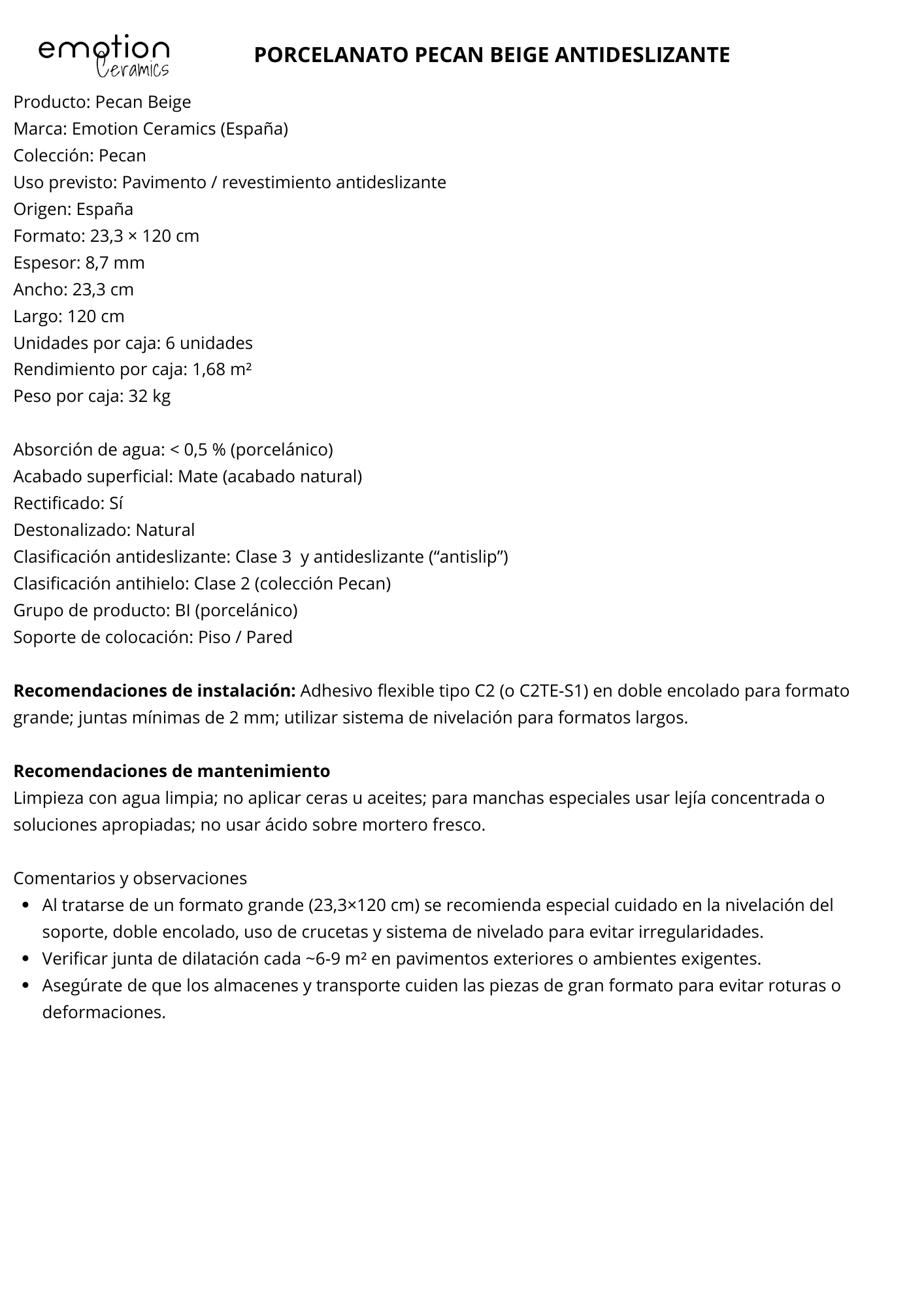 Porcelanato 23.3x120cm $17.990 m² c/iva - Pecan Antideslizante Beige