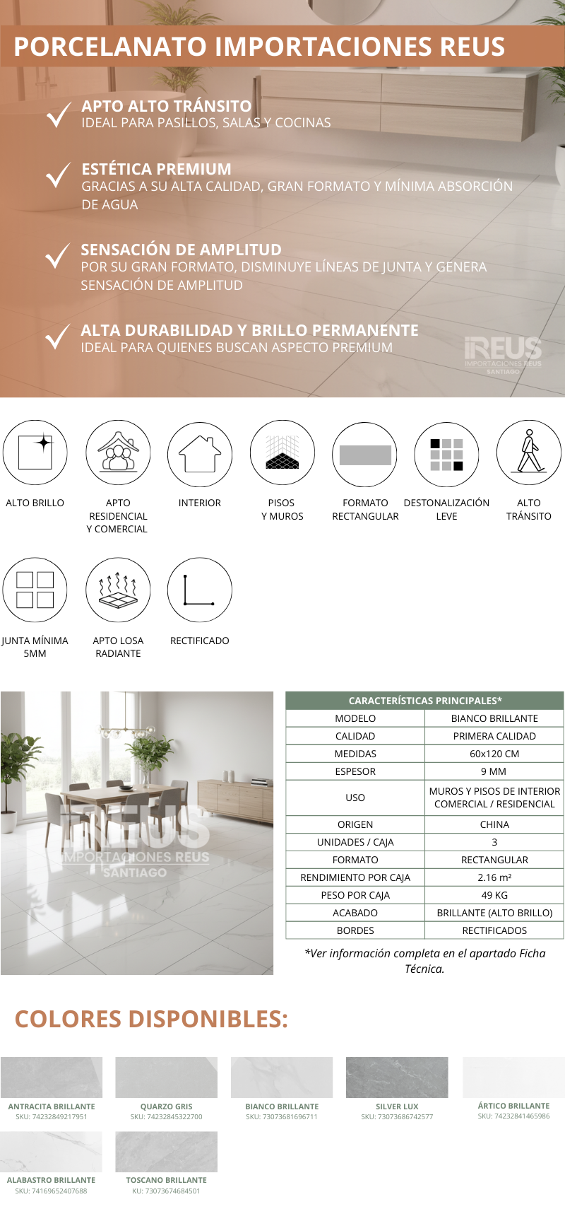 Porcelanato 60X120cm $13.990xm² - Bianco Brillante Stock por sucursal Stock por sucursal $ 30.218 cantidad Agregar al carro Encargar Imágenes referenciales: los colores pueden variar según la configuración de cada pantalla.
