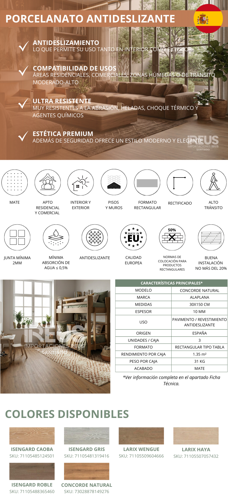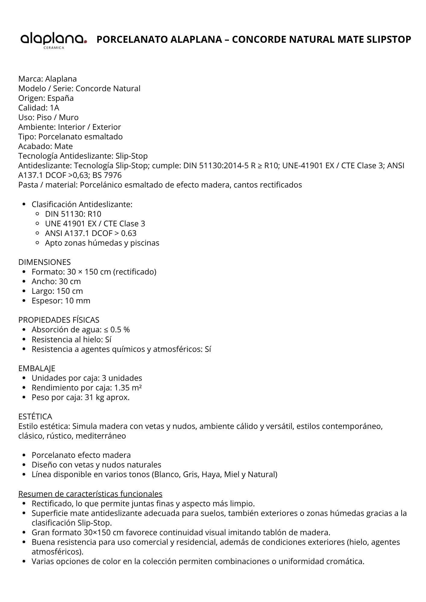 Porcelanato Antideslizante 30x150cm $19.990xm² - CONCORDE NATURAL MATE
