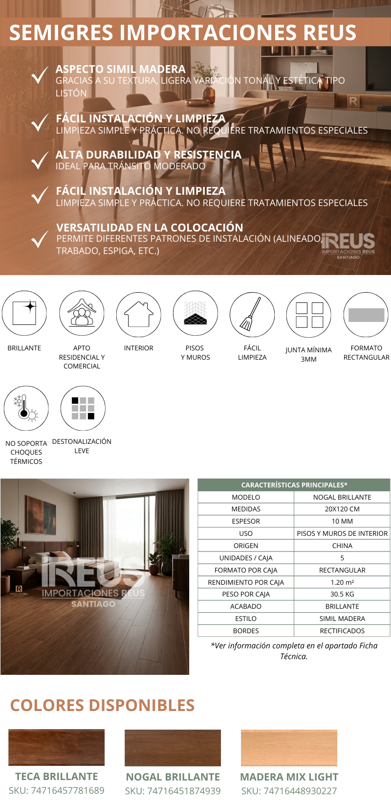 SEMIGRES 20X120cm $11.273 xm² - NOGAL BRILLANTE Stock por sucursal Stock por sucursal $ 13.528 cantidad Agregar al carro Encargar Imágenes referenciales: los colores pueden variar según la configuración de cada pantalla.